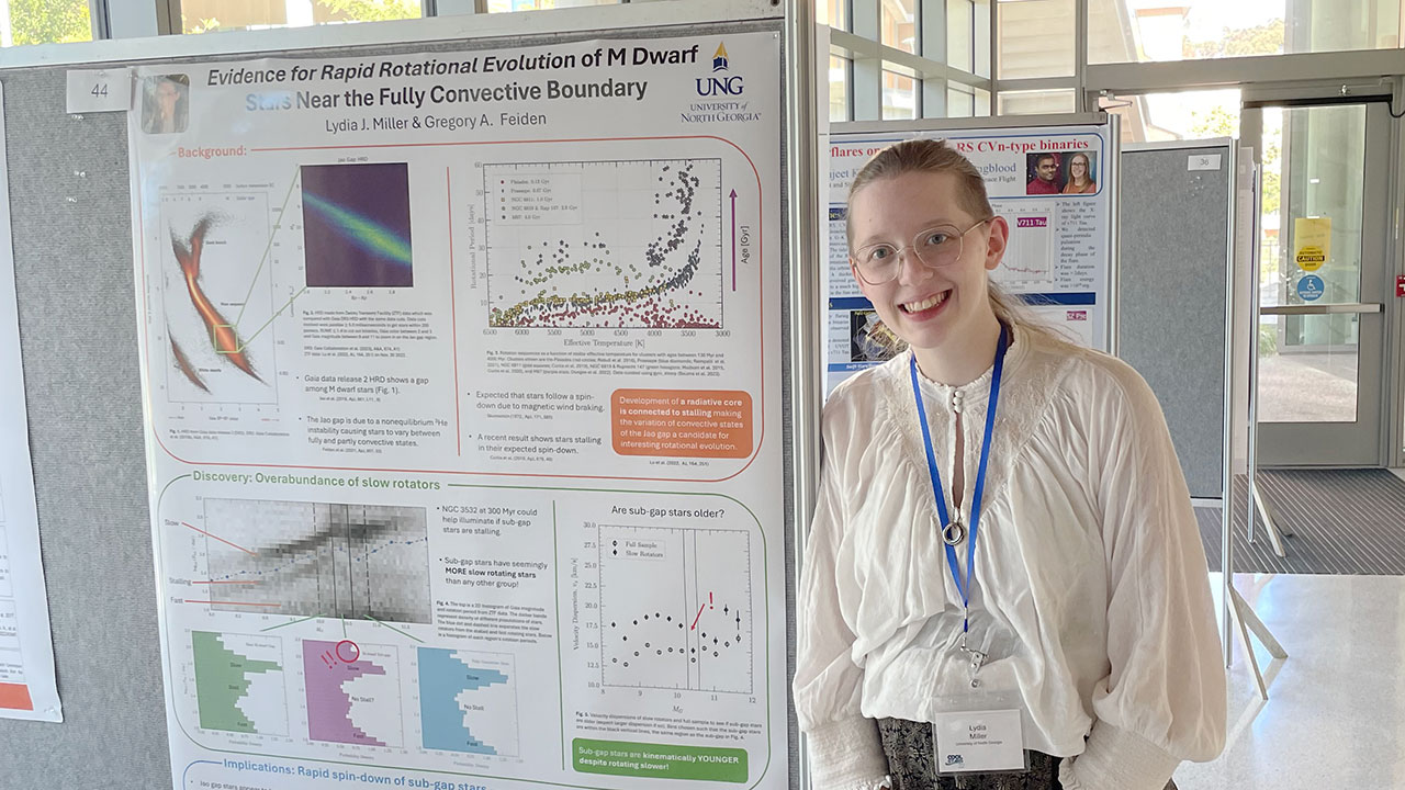 Miller had the opportunity to present her research on stellar rotation at the Cool Stars 22 international conference, the Georgia Regional Astronomy Meeting and UNG’s Annual Research Conference. She was also invited to present her work to the public at Agnes Scott College. Miller is grateful the research will continue with current and future students.