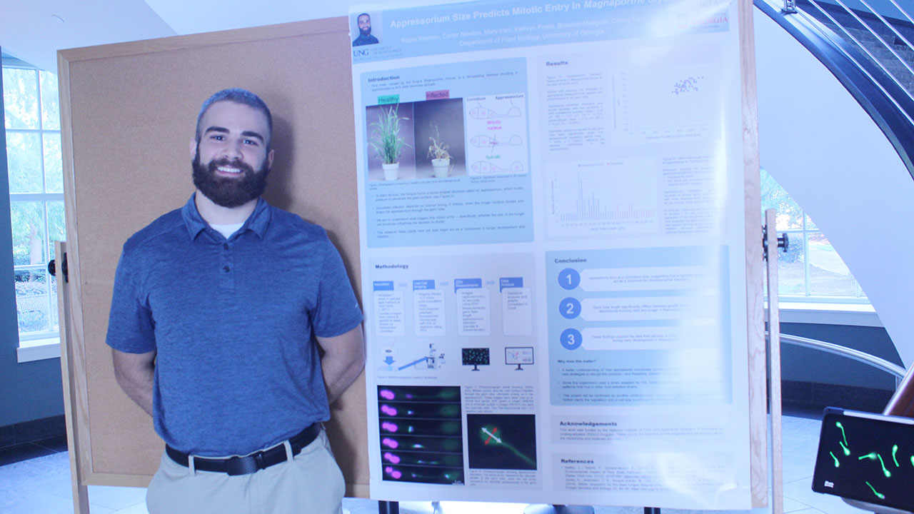 Keenan, a senior from Buford, Georgia, pursuing a degree in biology, took part in the UGA Crop Genetics and Genomics REEU and researched a fungus that affects rice. His work on two research teams at UNG helped pave the way for his UGA experience: