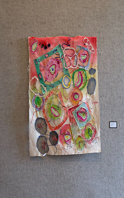 It consists of organic shapes which are cut, stained and either glued or stitched onto the raw canvas and "look alive," McCloy said. "I love that piece, and I love the idea of biomorphic abstraction. It's a lot of organic shapes that resemble cells and organisms. I want them to look like they're their own living thing. The patterns were just the repeated pattern of the cell shape."