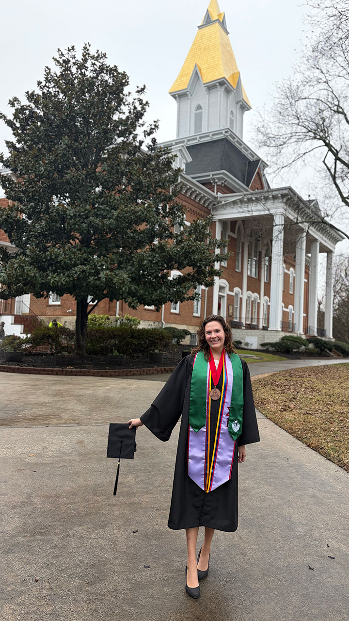 On campus, she was a member of the Honors Program. She has served as vice president of academic excellence for Sigma Kappa sorority and vice president of philanthropy and scholarship for the Panhellenic Executive Council.