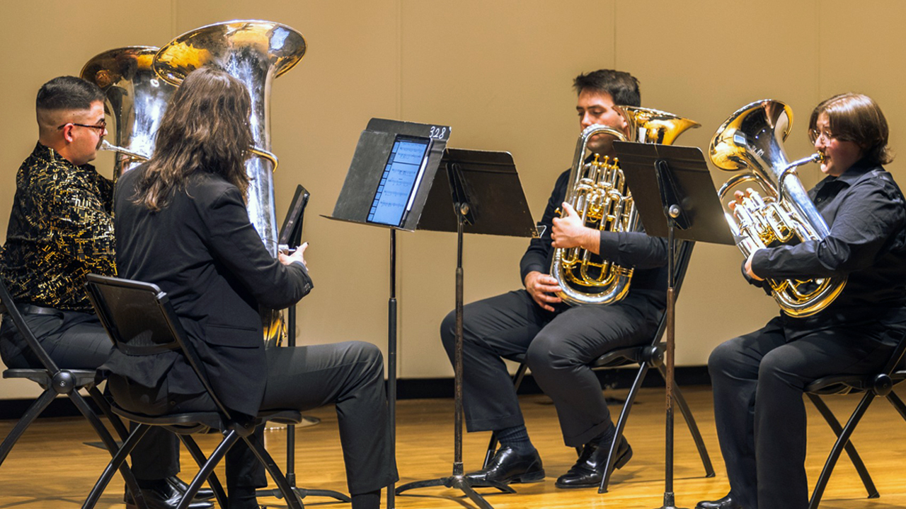 Yeager, along with his chamber group, "The Woofer Tuba Euphonium Quartet," made the finals of the conference's Chamber Music Competition against groups from Louisiana State University, University of Kentucky and University of Tennessee, among other programs. The Woofer quartet comprises Yeager; Lucymarie Dalton, a sophomore pursuing a degree in euphonium music education; Cooper Sandefur, a junior pursuing a degree in music composition; and Peter Pontes, a senior pursuing a degree in tuba performance.